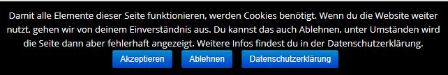 Die Cookie-Bar ist schon lange Pflicht. Der Besucher der Seite muss darüber informiert werden, dass ein Cookie gespeichert wird. Bisher hatte ich nur die Info. Wenn man weiter auf der Seite geblieben ist, war man automatisch einverstanden. Mit meiner neuen Cookie-Bar, die natürlich ebenfalls mithilfe eines Plugins umgesetzt wird, hat man nun auch die Möglichkeit, das Speichern eines Cookies zu verhindern und trotzdem auf der Seite bleiben. Dann kann es aber sein, dass vielleicht diverse Elemente nicht korrekt angezeigt werden.