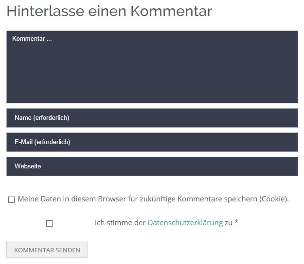 Ähnliches gilt für das Kommentieren. Auch dort werden Daten gespeichert. Und auch hier muss vor dem Absenden des Kommentars erst per Checkbox bestätigt werden, dass man mit der Speicherung der Daten laut Datenschutzerklärung einverstanden ist.
