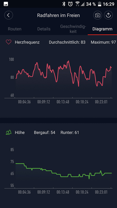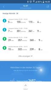 Wie eingangs erwähnt habe ich bis auf wenige Tests die Aktivitäten nicht genutzt (ja, ich muss mehr Sport machen, ich weiß). Aber meine Tests verliefen gut. Es stehen zahlreiche Aktivitäten zur Verfügung. Auch ohne Handy wird dank GPS die Strecke mitgetrackt, später kann man sogar an der Uhr die Route primitiv anzeigen lassen. Dank des internen Speichers, der bis zu 25 Aktivitäten speichern kann, kann man auch mal ein paar Tage länger warten, bis man die Uhr mit dem Smartphone synchronisiert. Profisportler sind mit Profi-Geräten sicher besser beraten, aber für den Otto-Normal-Verbraucher sollten die hier gebotenen Funktionen und gewonnenen Daten ausreichen.