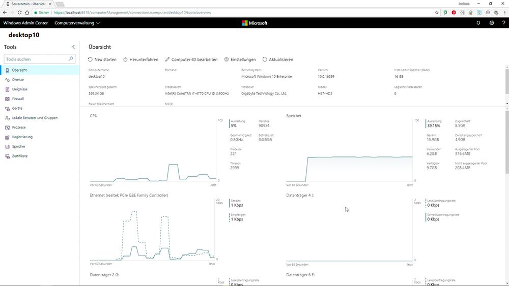 Microsoft hat ganz frisch das Windows Admin Center für Windows 10 und ab Windows Server 2012 R2 zur Verfügung gestellt, in dem viele Windows-Verwaltungstool unter einer modernen Weboberfläche gebündelt sind.